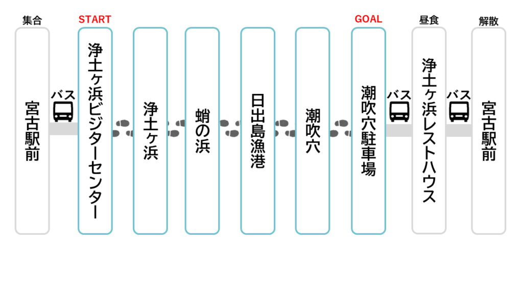 浄土ヶ浜~潮吹穴コース 歩行時間 3時間30分